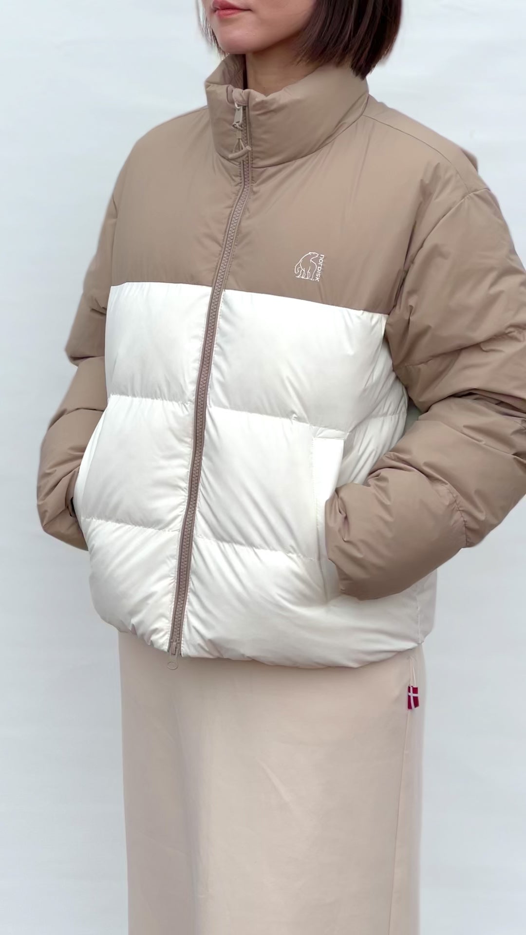 ウィメンズ カラーブロック ダウンジャンパー